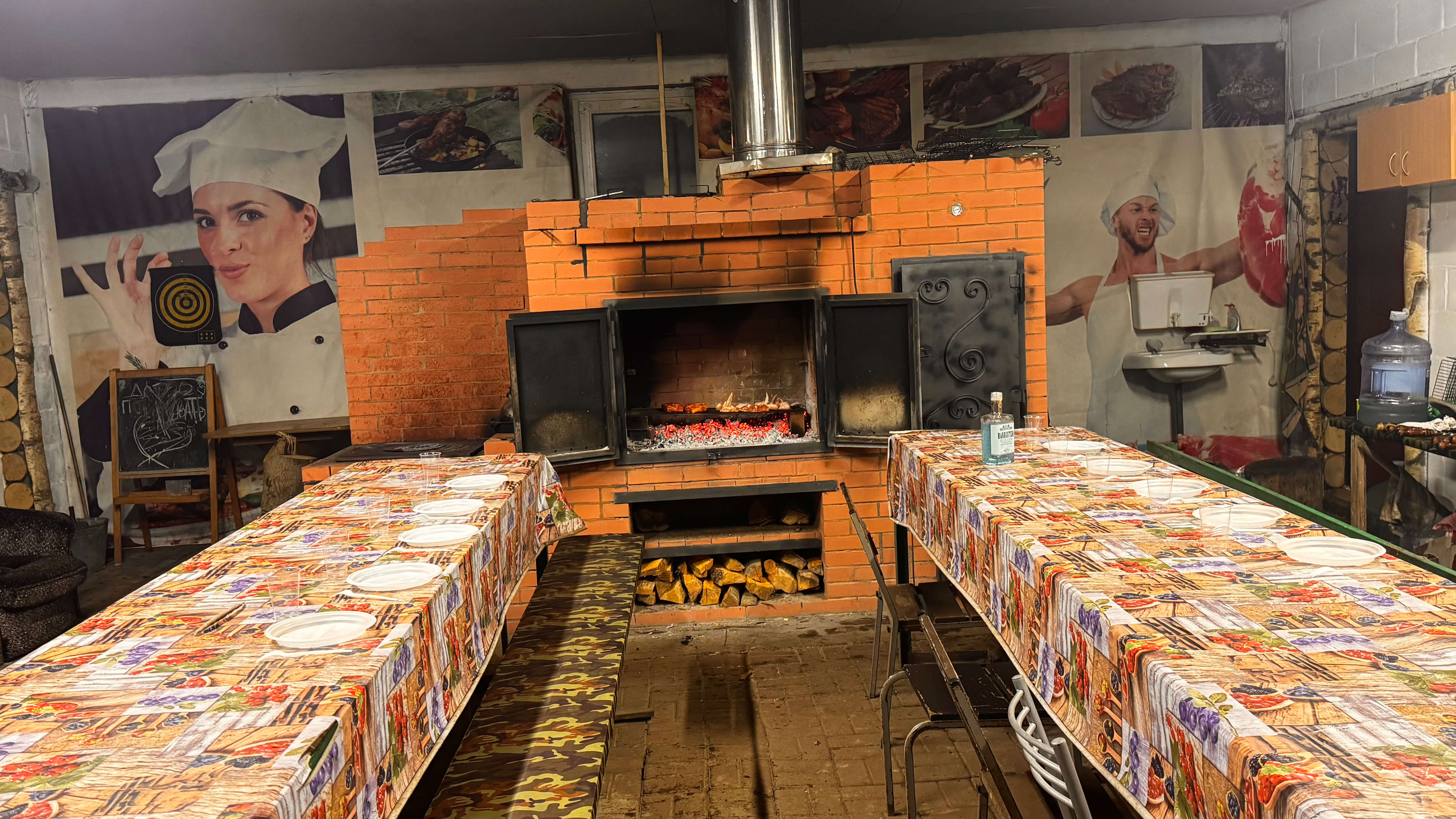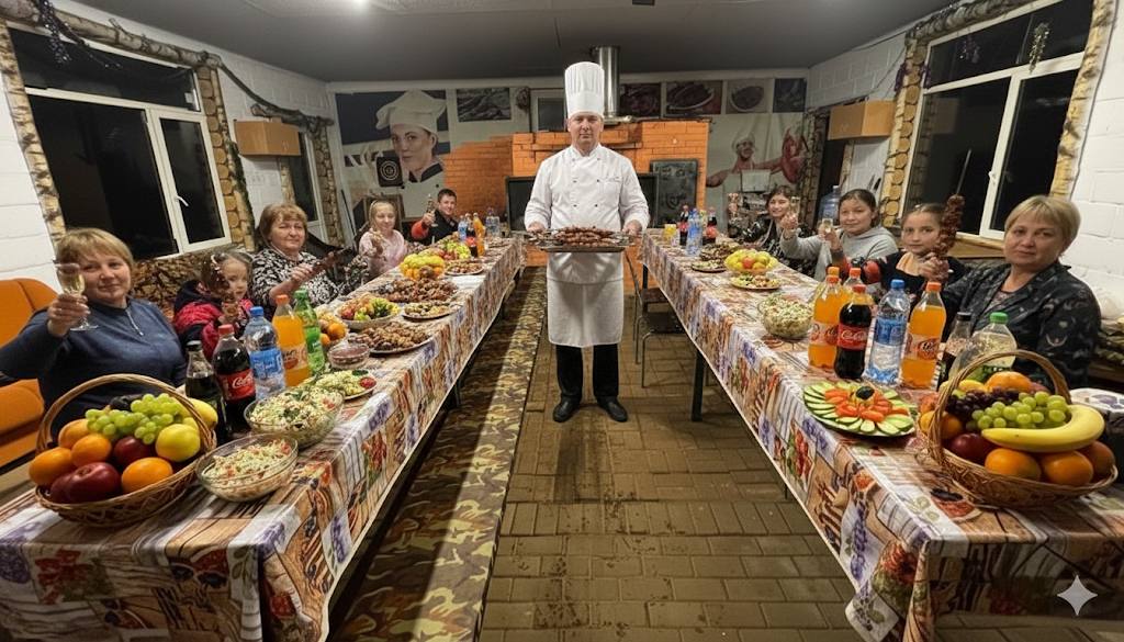 Территория оборудована мангальными зонами, кухней и местами для приготовления блюд. Мы организуем шашлычные фуршеты и выездные банкеты, а также поддерживаем работу с кейтерингом. Каждое блюдо становится частью общей атмосферы праздника.