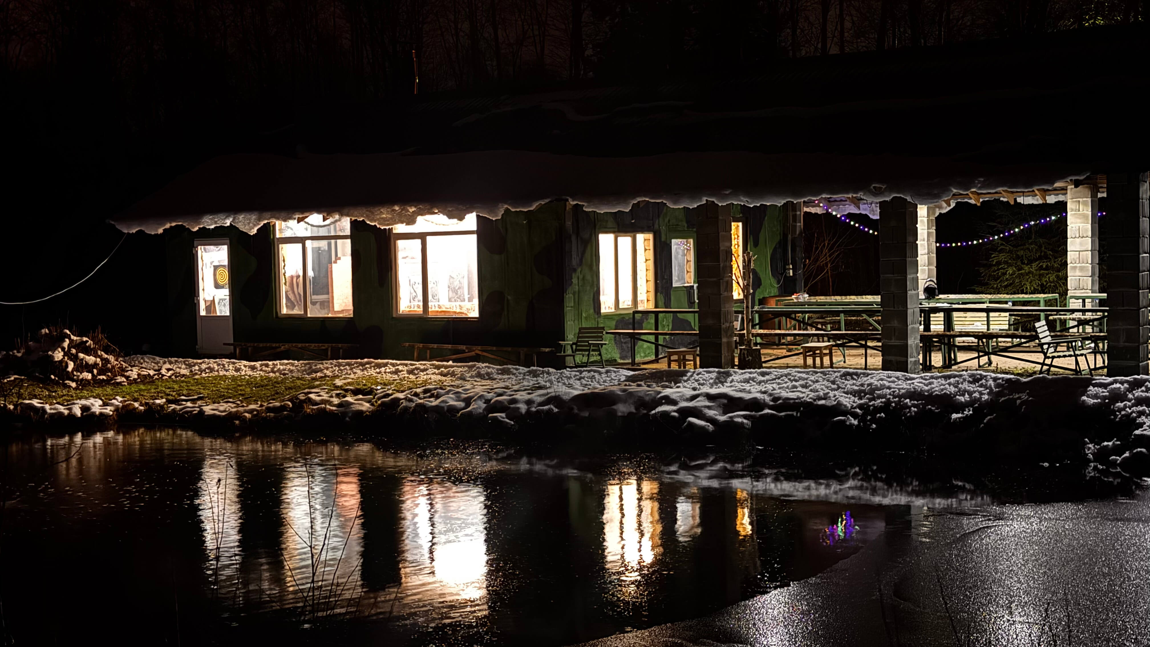 На территории клуба расположена просторная открытая площадка и большая беседка, подходящая для корпоративов, выпускных, семейных праздников, тимбилдингов и мероприятий любого масштаба. Тёплый домик вмещает до 30 человек, а территория позволяет разместить большие компании — до 200 гостей без ограничений.
